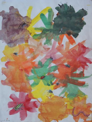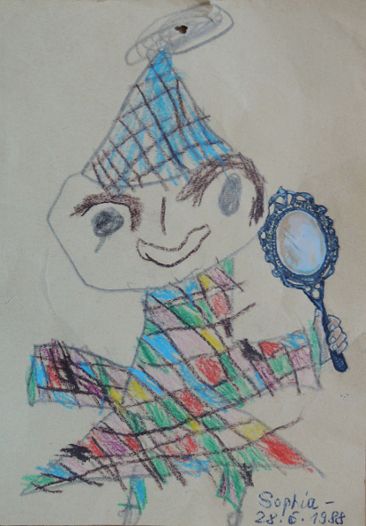 Bei dieser Serie nehme ich direkten Bezug auf meine eigenen, originalen Kinderbilder. Dabei kann man oft nicht sagen, wer der Klügere ist. Während ich als Kind viel ungezwungener an manche Dinge herangehen konnte, wich dies im Erwachsenenalter dem Wunsch nach Perfektion und einer gewissen Ernsthaftigkeit.